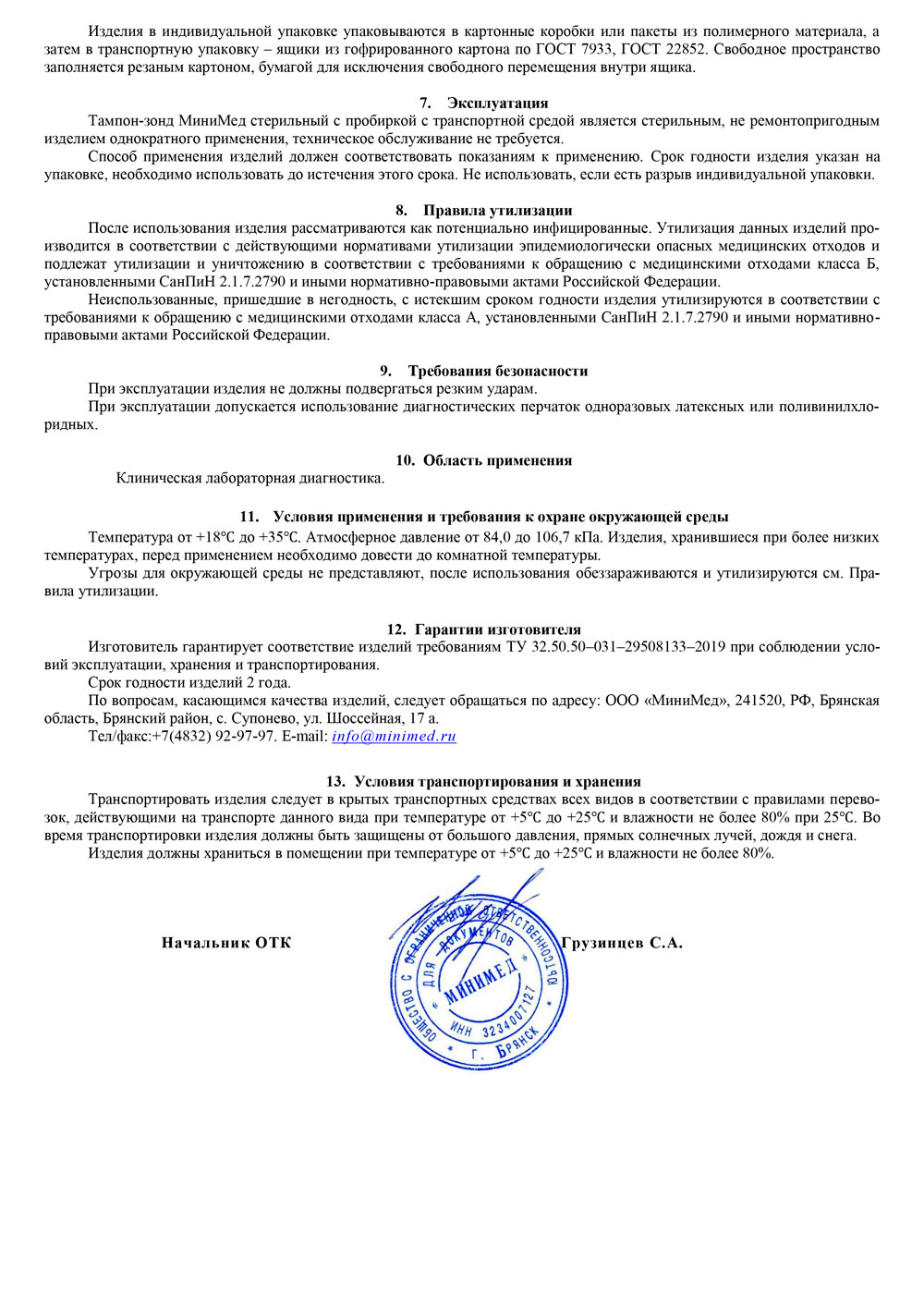 - Исх. № 30 Инфо Тампон-зонд МиниМед стерильный с пробиркой с транспортной средой с