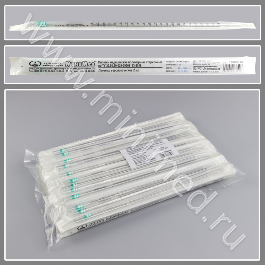 Пипетка серологическая 2 мл, стерильная, п/с, инд.уп./100/800/3200 шт, ТУ 32.50.50-029-29508133-2018, МиниМед