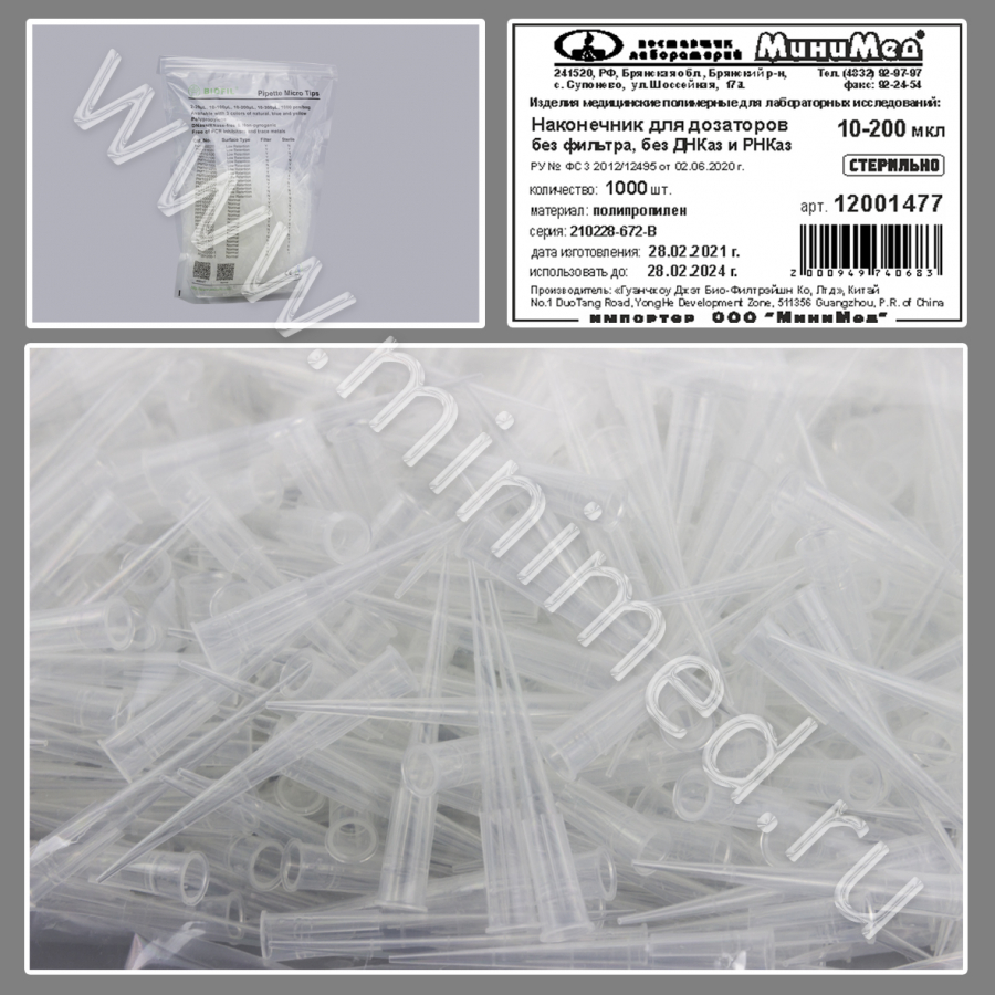 Наконечники предназначены для отбора и переноса проб с помощью дозаторов при проведении ПЦР-анализа. Наконечники стерильные, стерилизованы гамма-облучением. Без фильтра. Градуированные (20-50-100-200 мкл). Наконечники без ДНКазы, РНКазы и пирогенов.