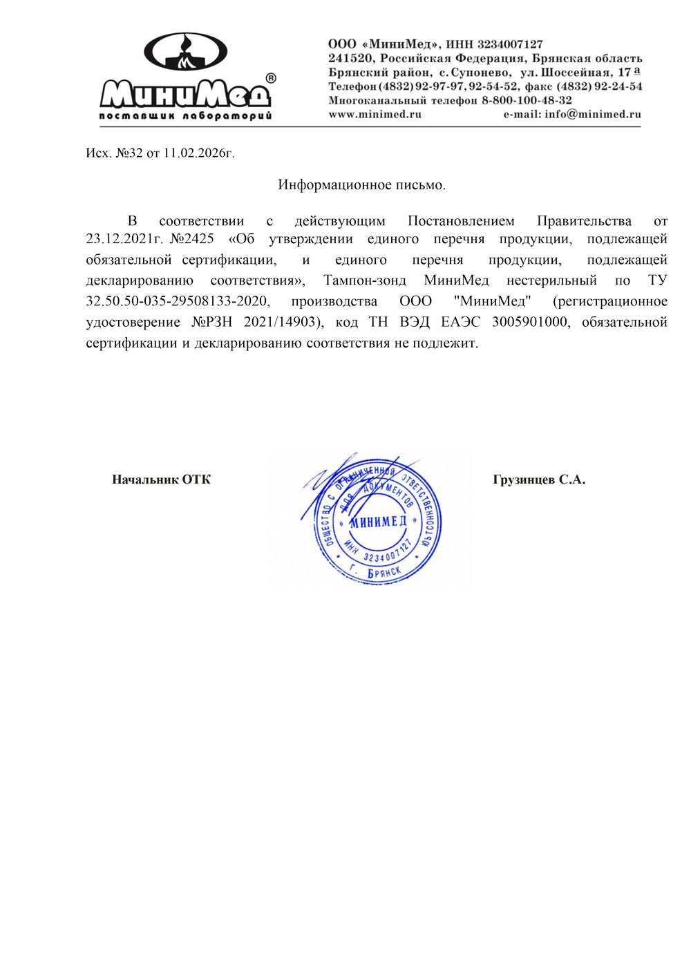 РУ № РЗН 2021/14903 от 07.10.2021г.