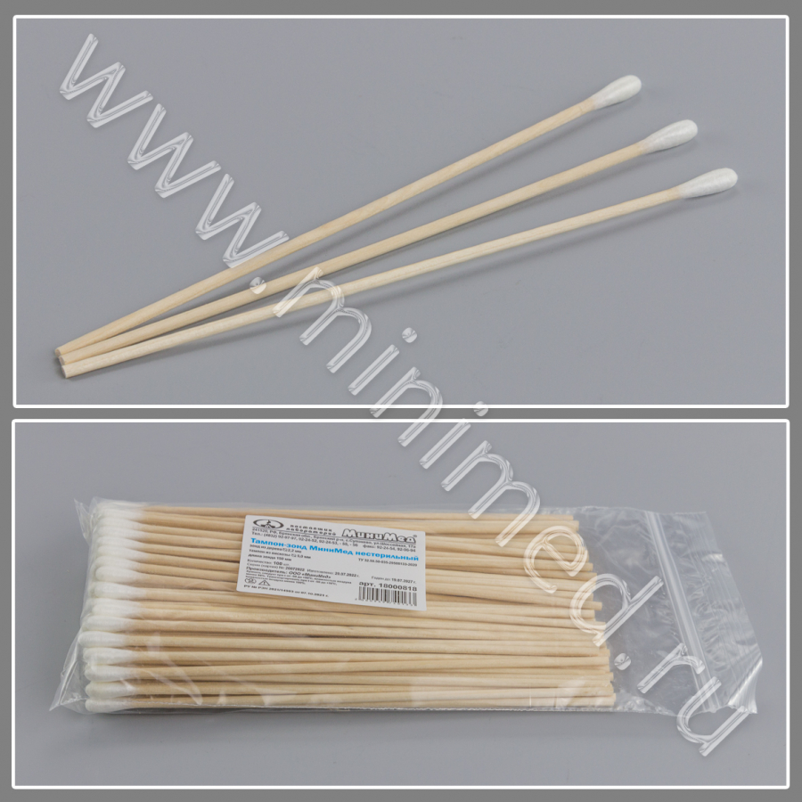 Тампон-зонд МиниМед нестерильный, зонд дерево, тампон вискоза, ТУ 32.50.50-035-29508133-2020, уп.100/20тыс.шт