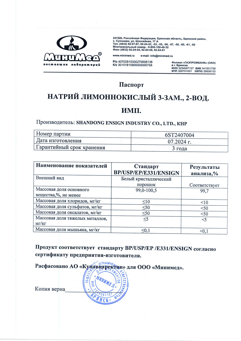 Натрий лимоннокислый 3-зам. 2--вод., имп. 0,5 кг