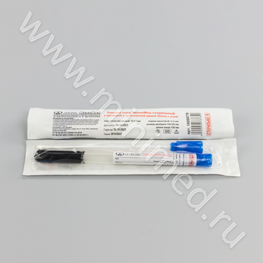 Тампон-зонд МиниМед стерильный с пробиркой с транспортной средой Эймса с углем, ТУ 32.50.50-031-29508133-2019, инд.уп./100/1000 шт