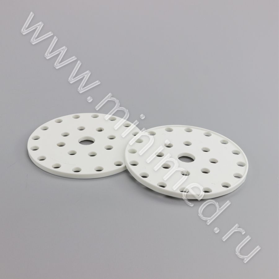 Вставка представляет собой перфорированный диск толщиной 7 мм с большим отверстием в центре. Маленькие отверстия удобны для расположения тиглей малого размера. Используется при температуре окружающей среды.