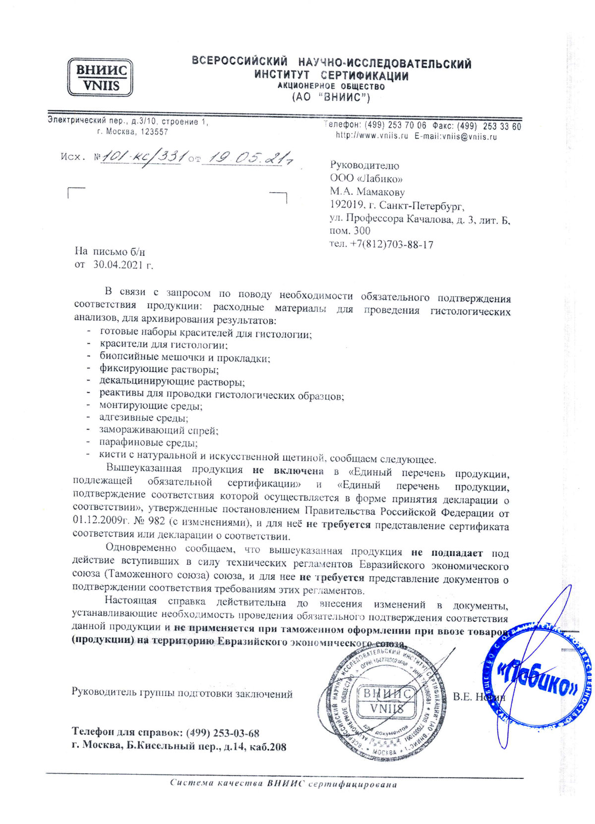 - Расходные материалы для проведения гистологических анализов. Лабико. Информ. пис