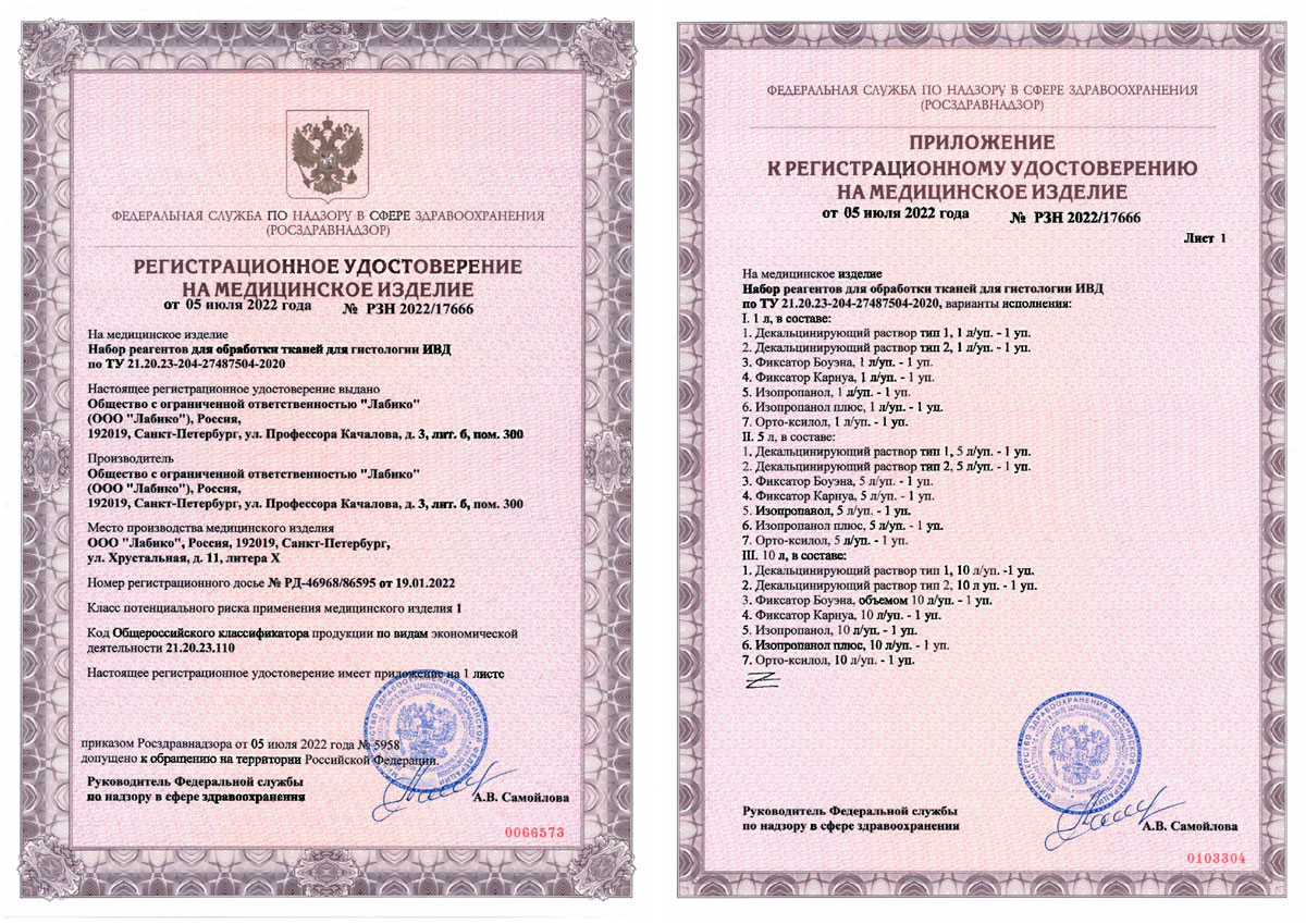 - Набор реагентов для обработки тканей для гистологии ИВД. Лабико. РУ