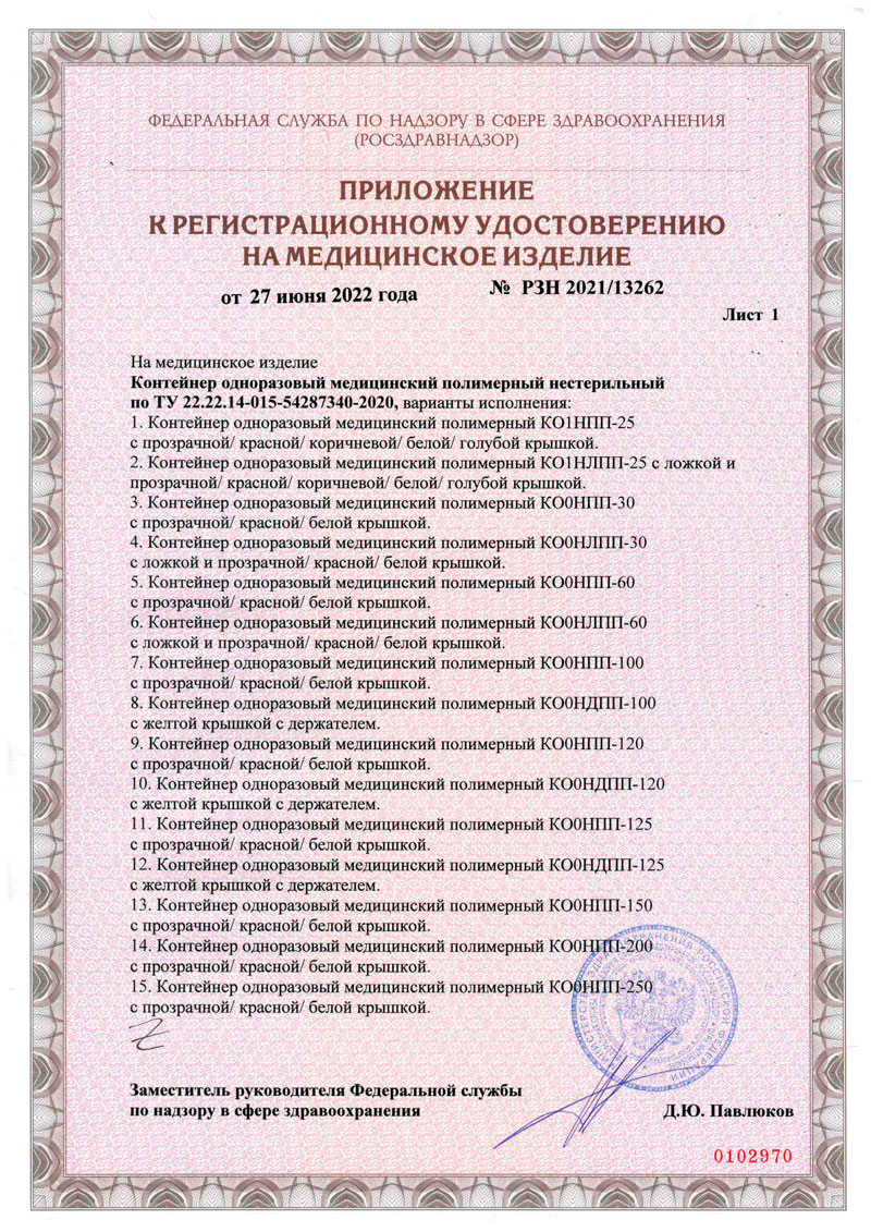 - Контейнер одноразовый медиц. полимерный нестерильный. Перинт. РУ-2022-2