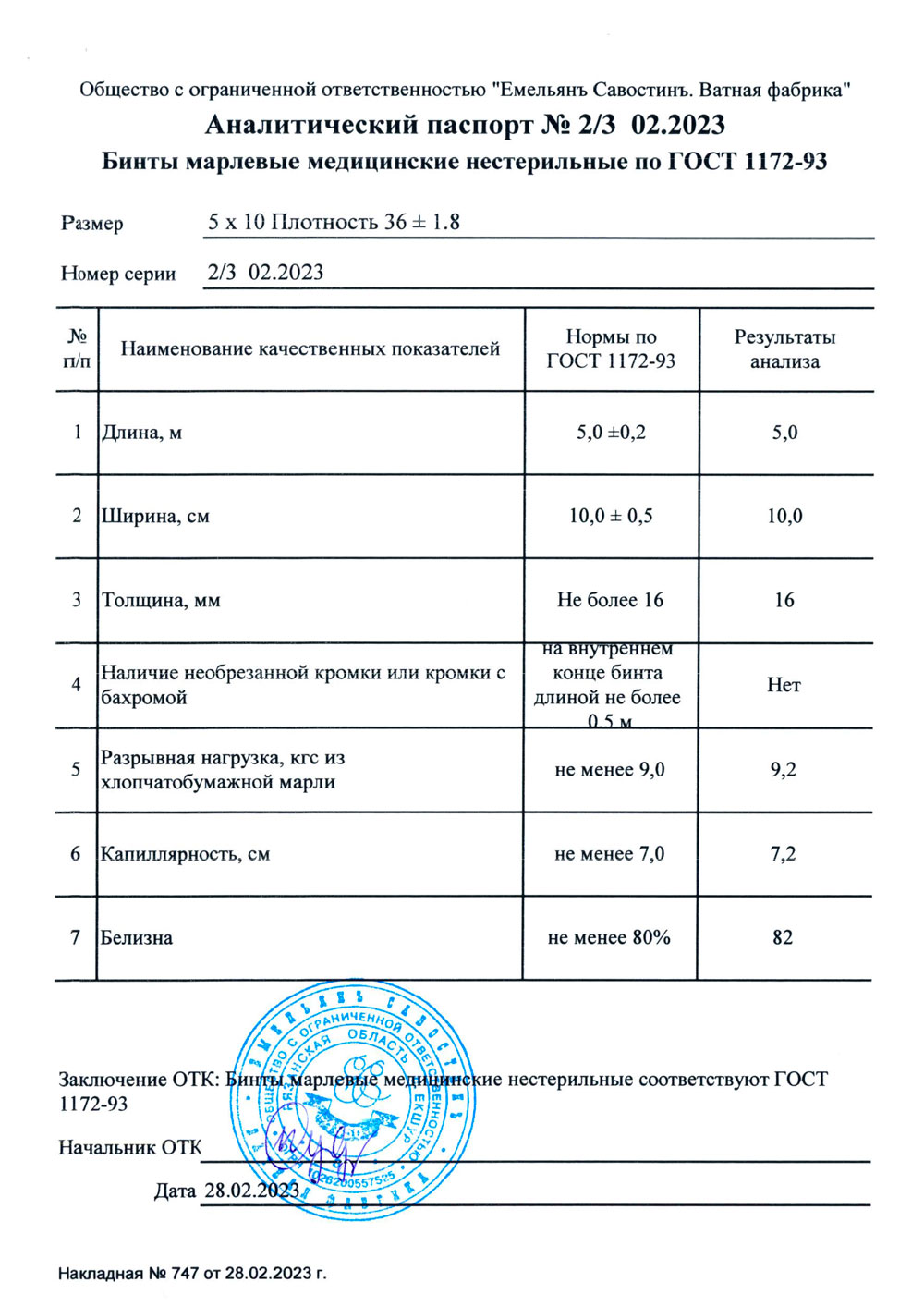 - Бинт марлевый медиц. нестерильный 5х10, п. 2-3 от 02.2023