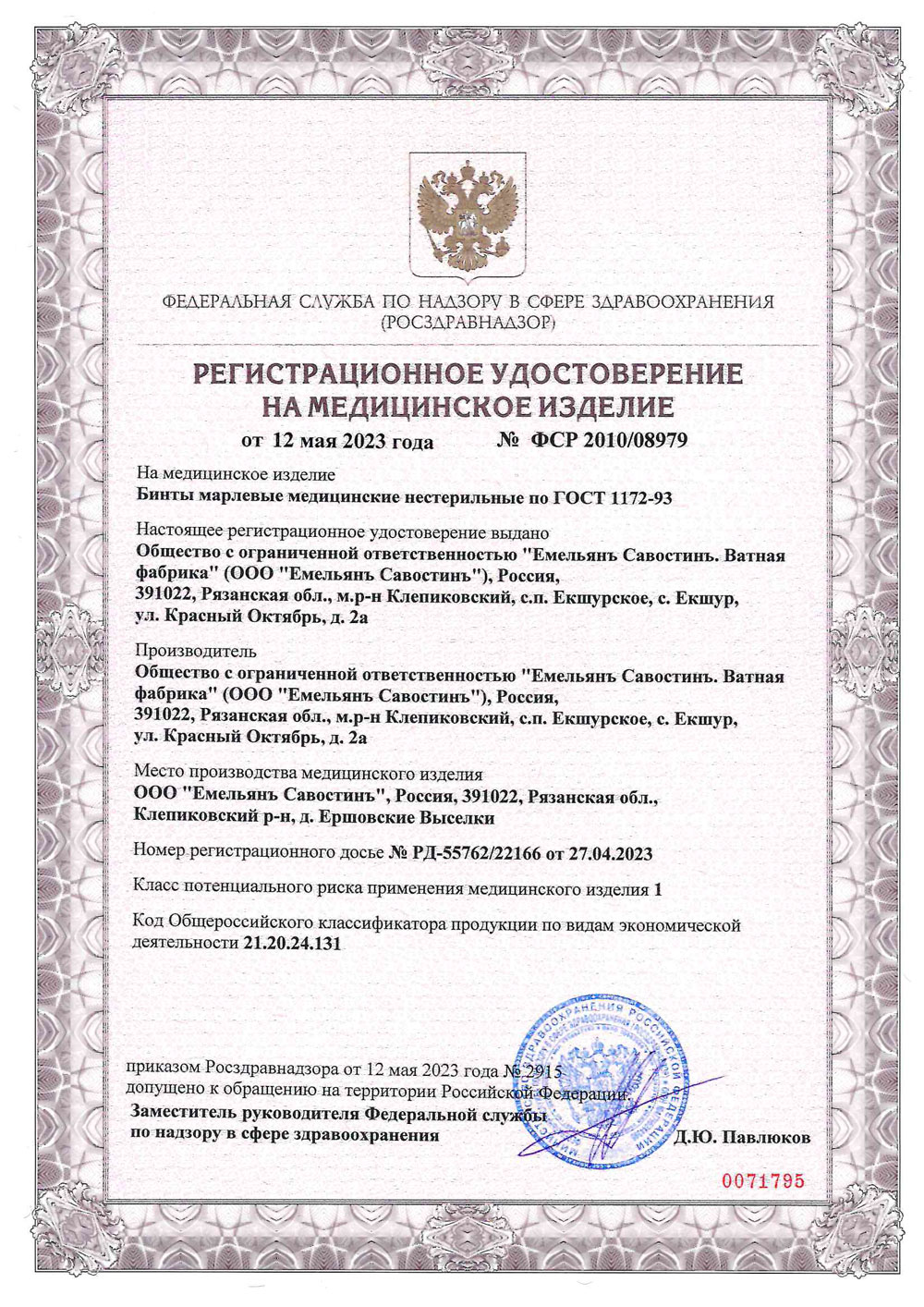 РУ № ФСР 2010/08979 от 12.05.2023 г.