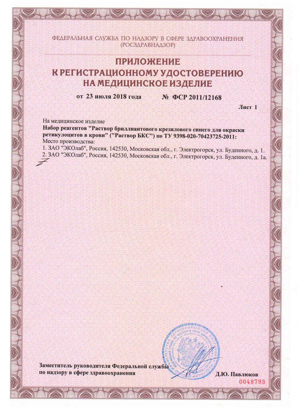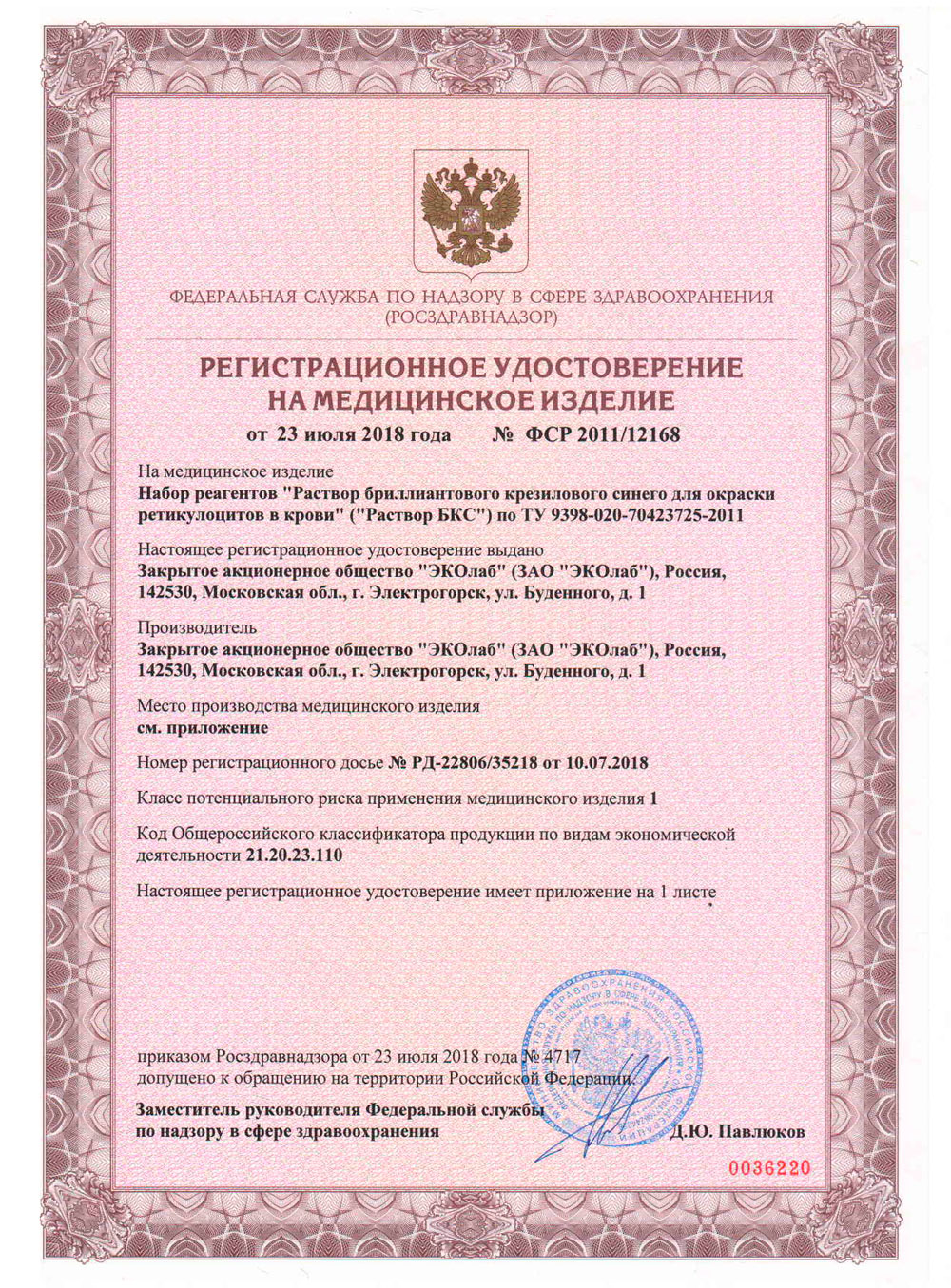 РУ № ФСР 2011/12168 от 21.07.2018 г.