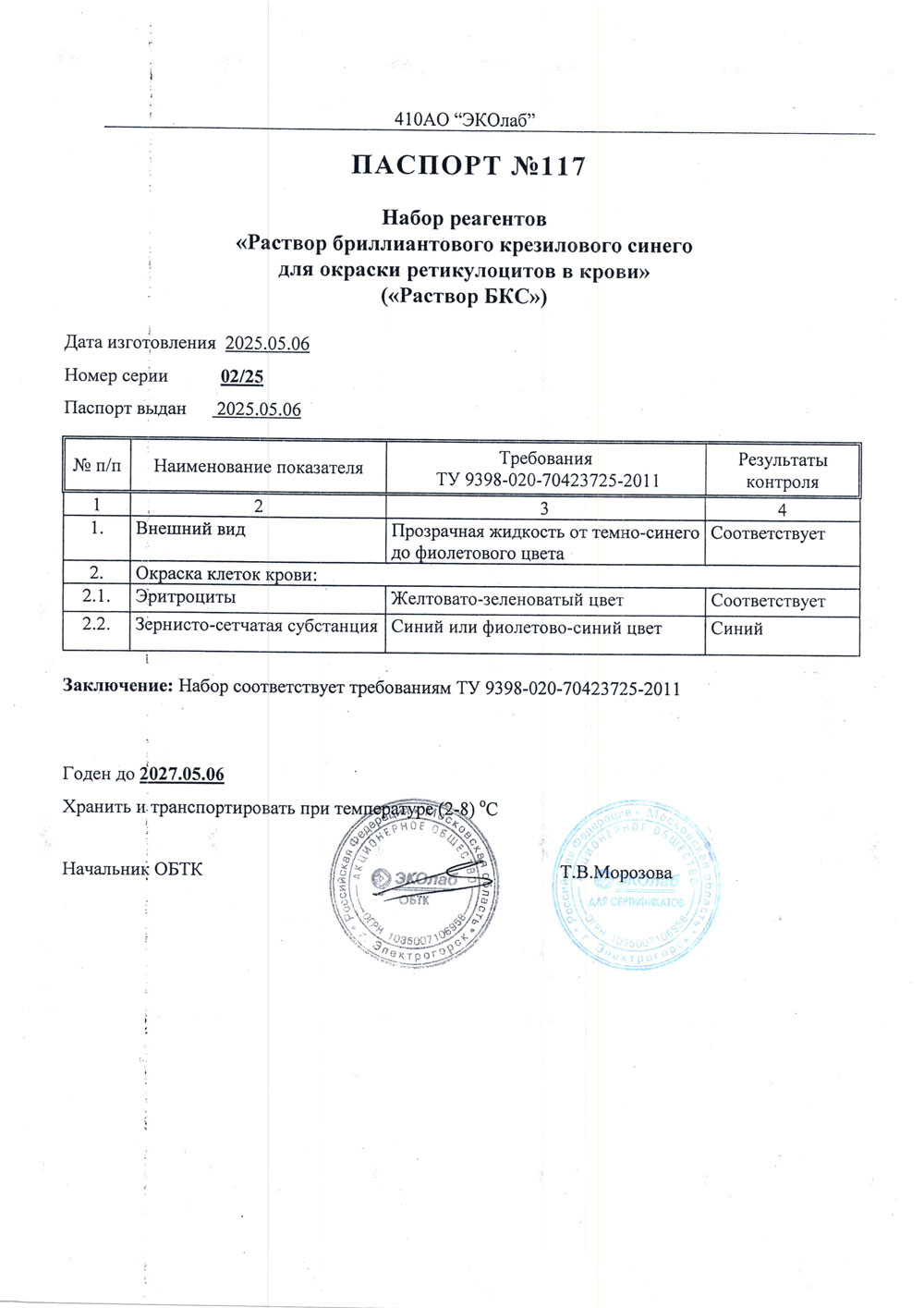 - Раствор БКС. Эколаб, п. 04-25 от 10.10.2025