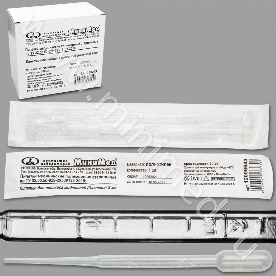 Пипетка для переноса жидкостей (Пастера) 2 мл, стер, п/эт, ТУ 32.50.50-029-29508133-2018, инд.уп, уп.100шт, МиниМед