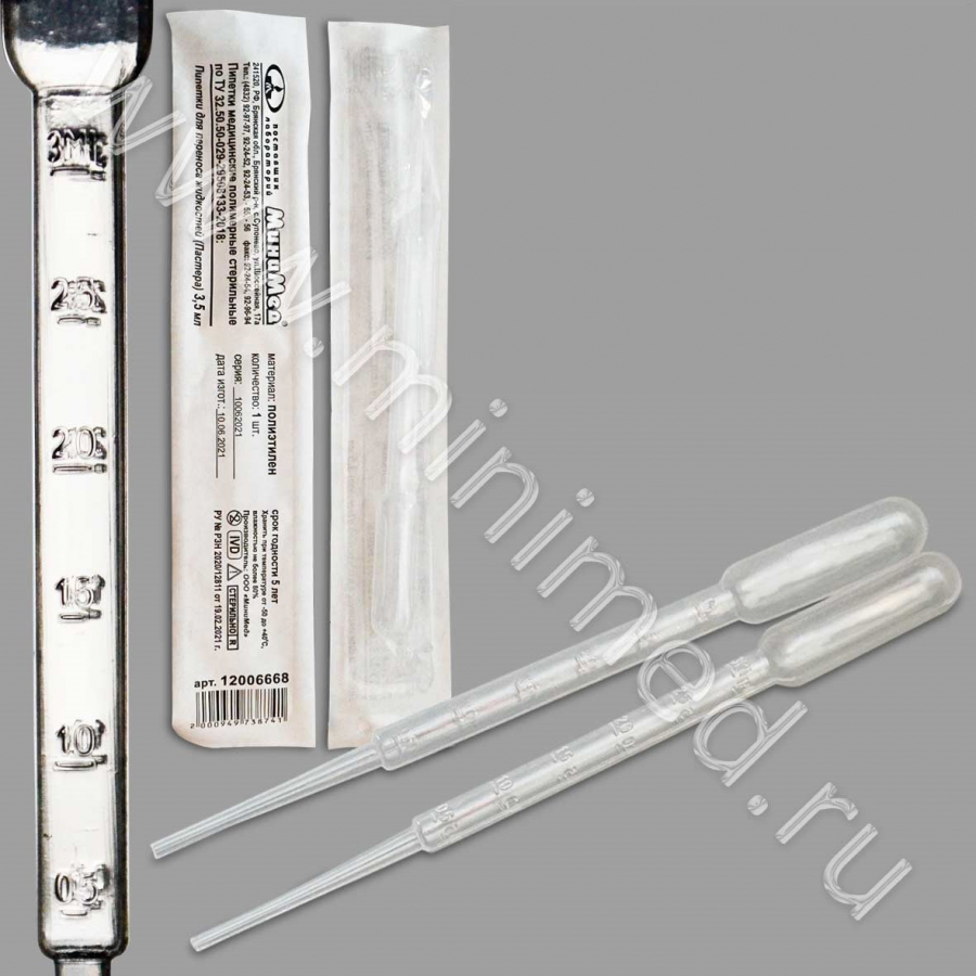 Пипетка для переноса жидкостей (Пастера) 3,5 мл, стер, п/эт, ТУ 32.50.50-029-29508133-2018, инд.уп, уп.100шт, МиниМед
