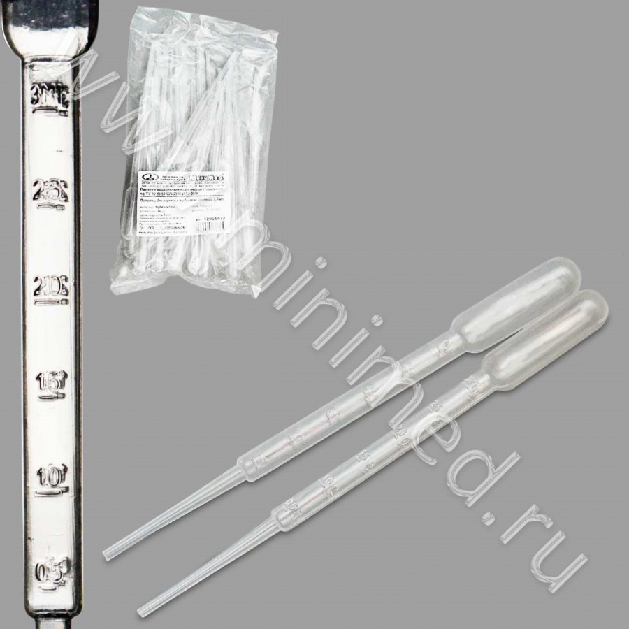 Пипетка для переноса жидкостей (Пастера) 3,5 мл, стерильная, п/эт, ТУ 32.50.50-029-29508133-2018, уп.20 шт, МиниМед