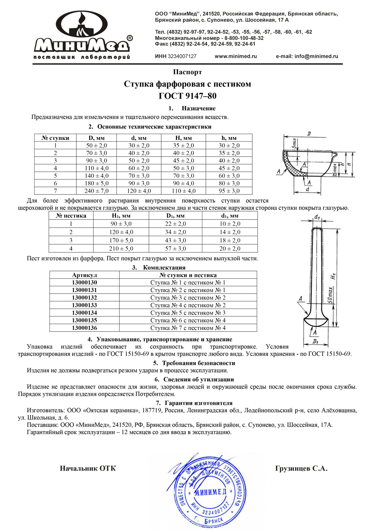 - Ступка, Пест. Паспорт качества от 29.08.2025