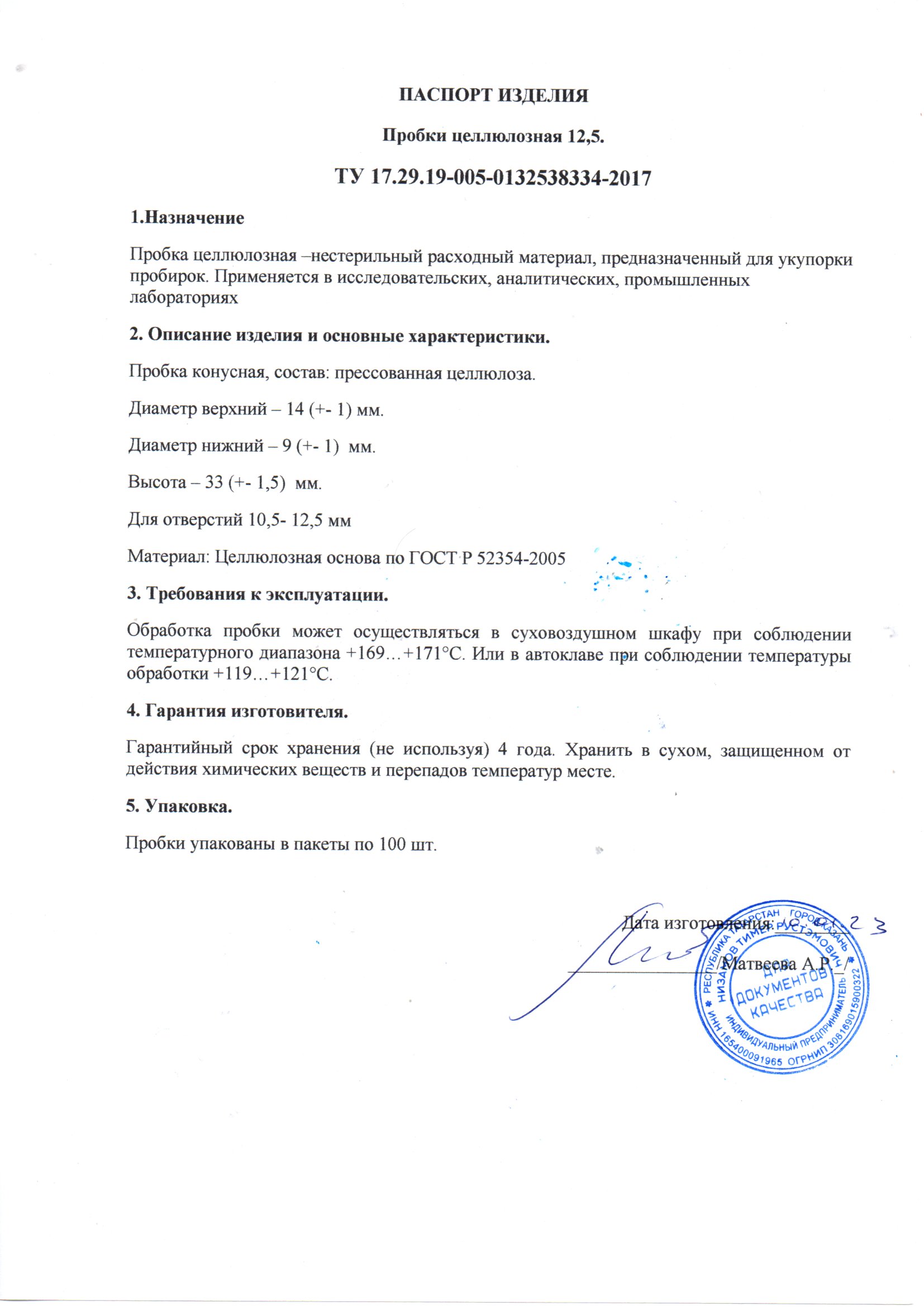 Предназначена для использования в исследовательских, аналитических, промышленных лабораториях при работе во всех типах пробирок, колб и флаконов. Изготовлена из прессованной целлюлозы. Выдерживает обработку в сухожаровом шкафу при соблюдении температурного диапазона 169-171 °С или в автоклаве при соблюдении температурного диапазона119-121 °С; Проницаема для воздуха.