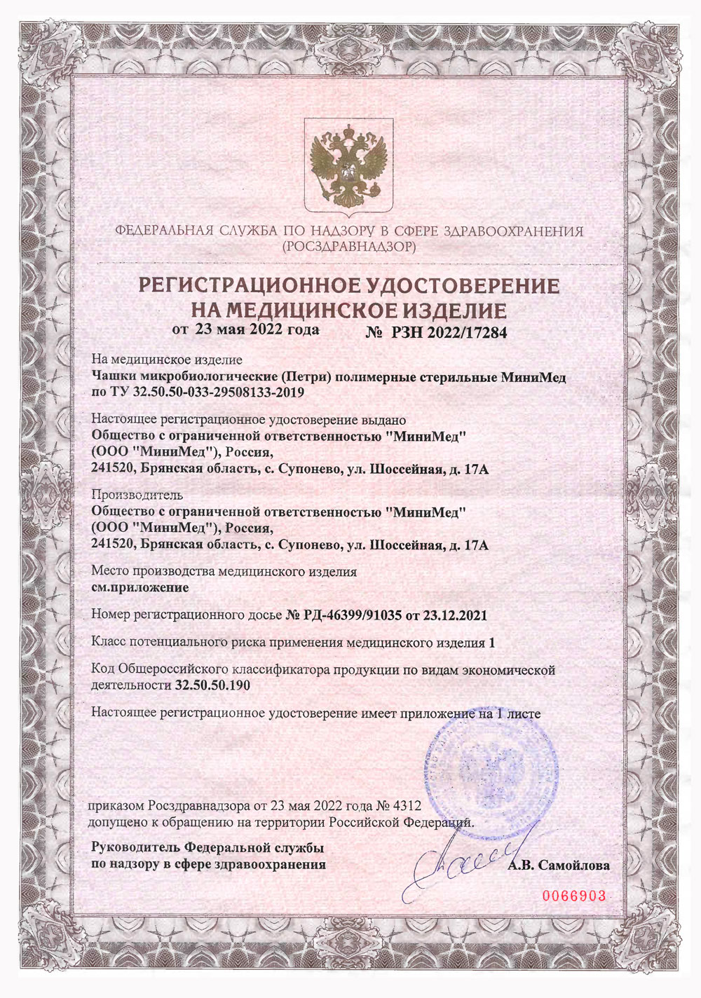 РУ № РЗН 2022/17284 от 23.05.2022 г.