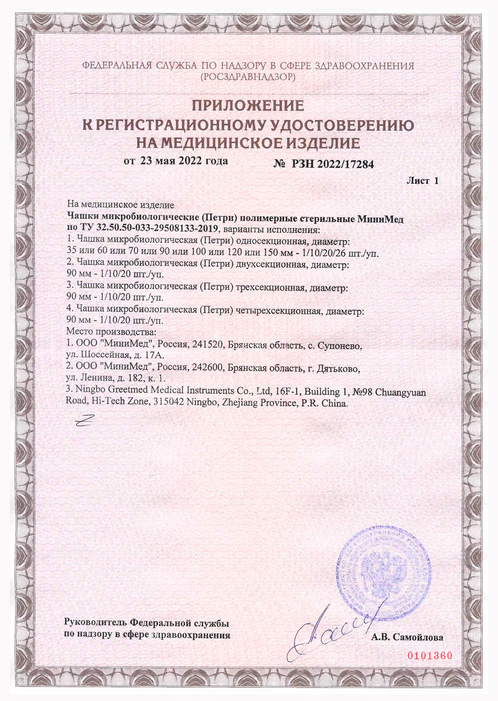 РУ № РЗН 2022/17284 от 23.05.2022 г.