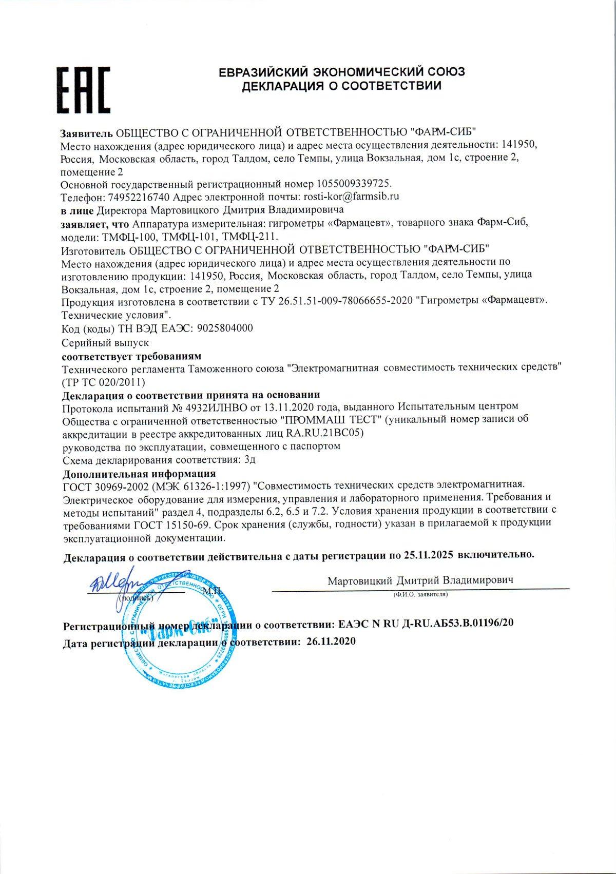 - Гигрометры Фармацевт. ООО Фарм-Сиб. Декларация до 25.11.2025