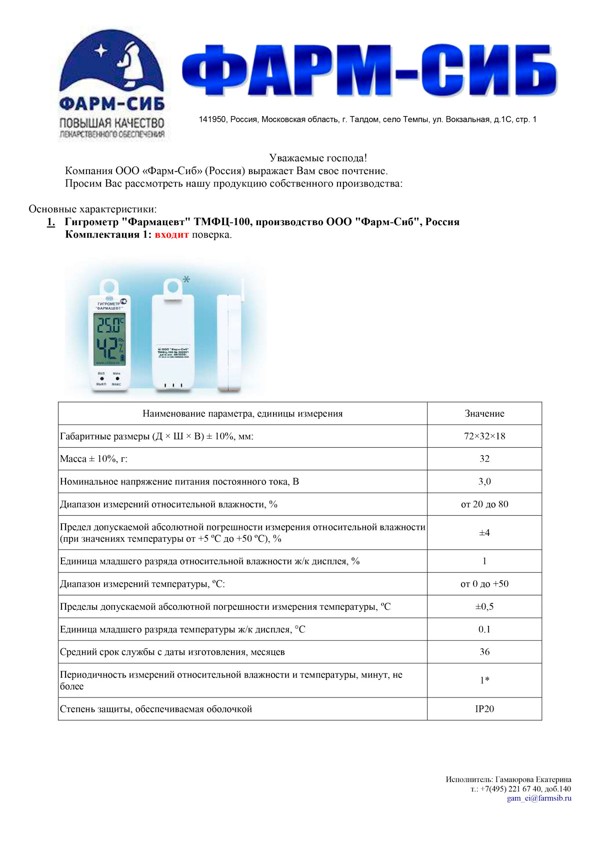 - Гигрометры Фармацевт. ООО Фарм-Сиб. Инф. письмо