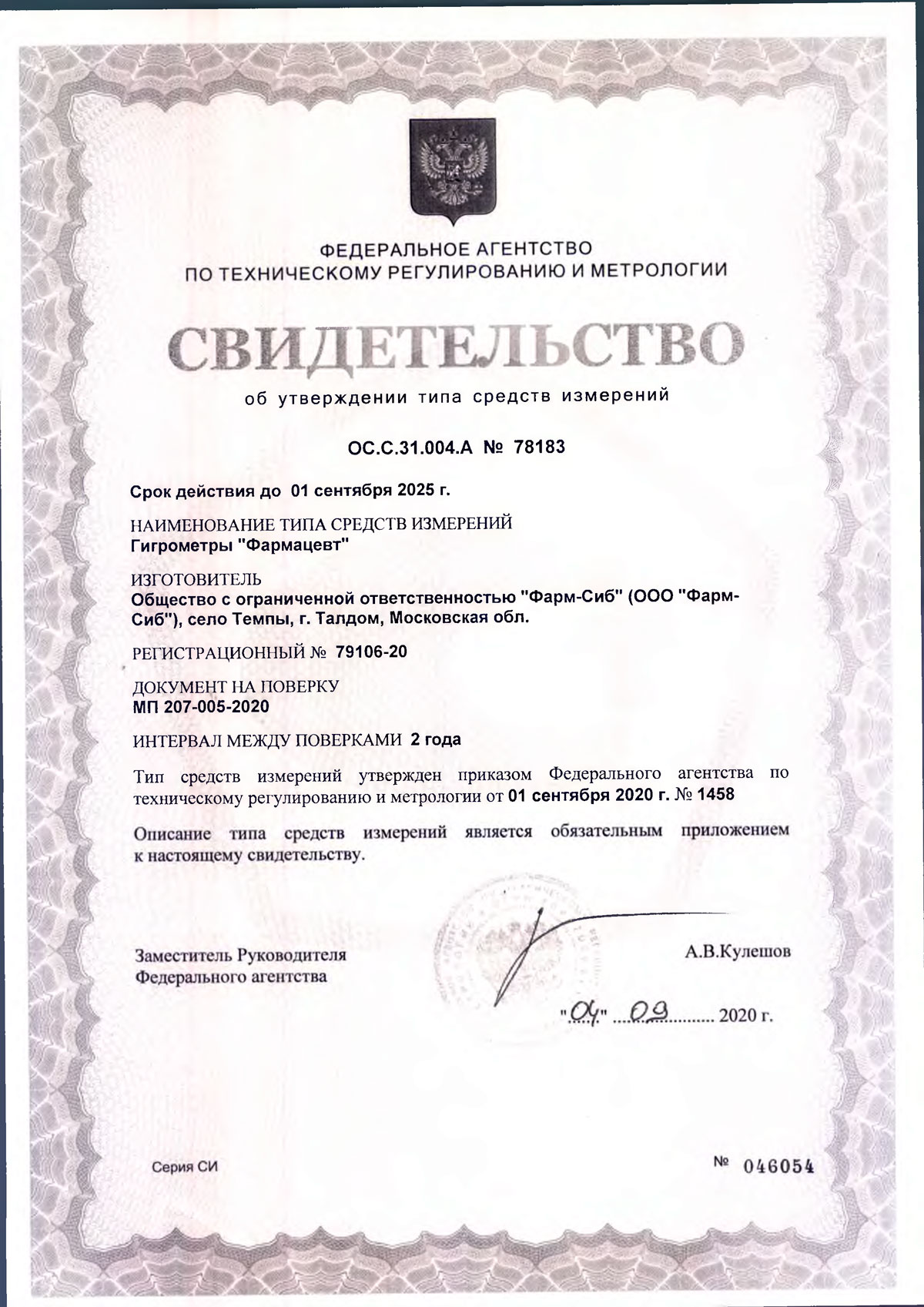 - Гигрометры Фармацевт. ООО Фарм-Сиб. Свидетельство ТСИ до 01.09.2025