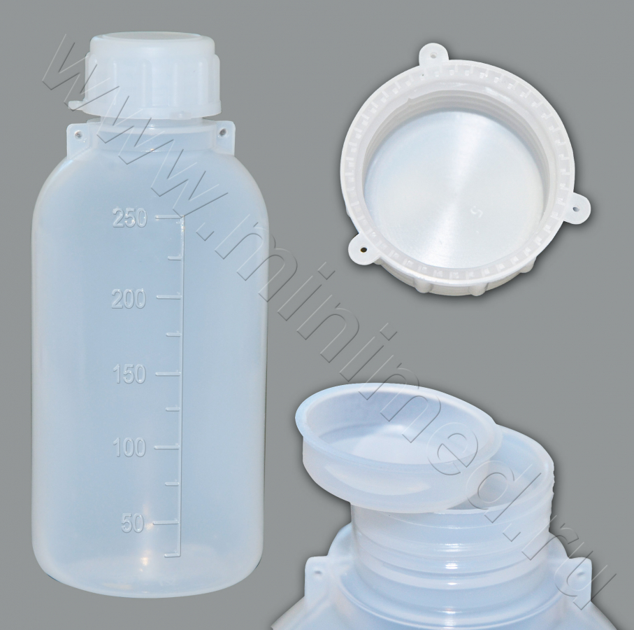 Бутылка градуированная 250 мл, с узким горлом, с крышкой, п/эт, LAMAPLAST, шт