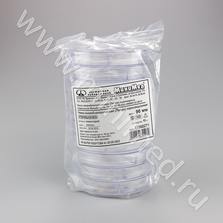 - Чашки микробиологические (Петри) полимерные стерильные МиниМед. РУ-2