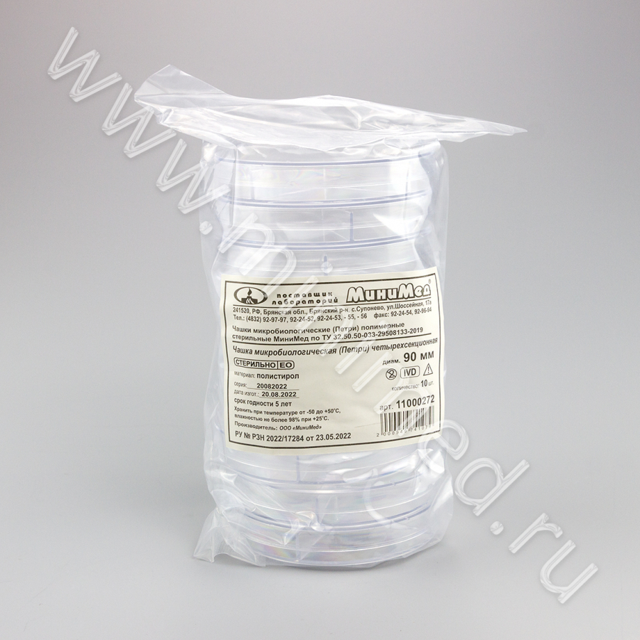 - Чашки микробиологические (Петри) полимерные стерильные МиниМед. РУ-2