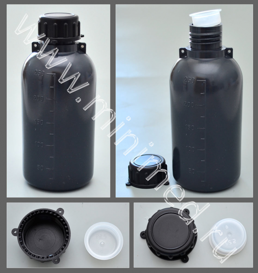 Бутылка градуированная 250 мл, с узким горлом, с крышкой, серая, п/эт, LAMAPLAST, шт