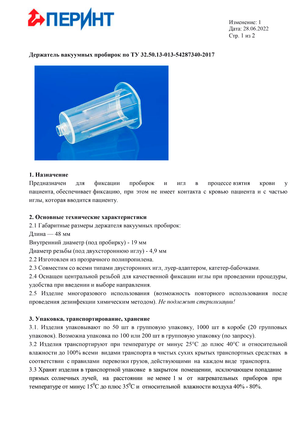 - Держатель вакуумных пробирок. Технические данные 2022 (изм. 1)-2