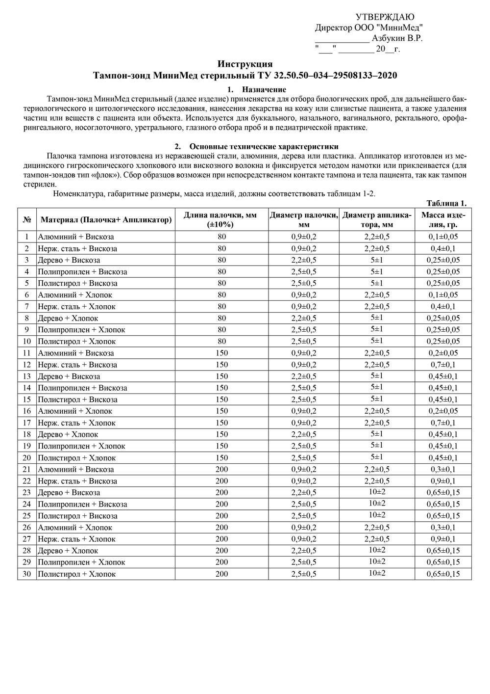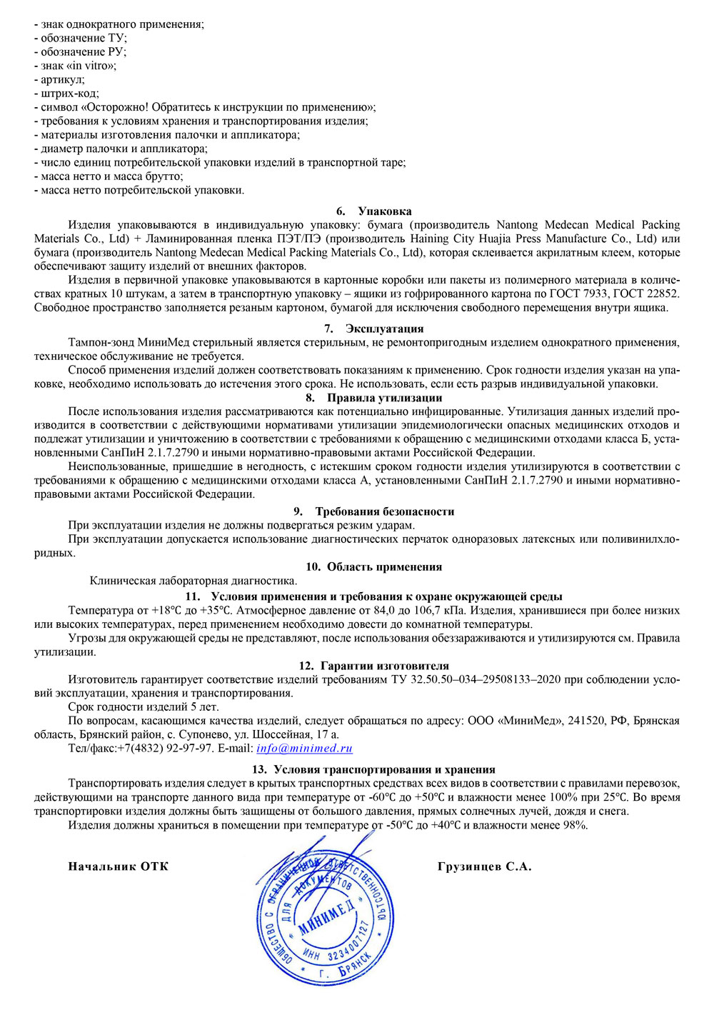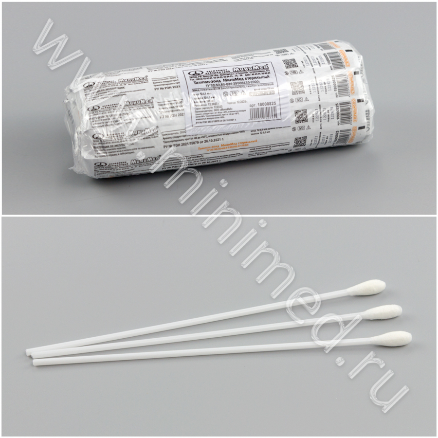 Тампон-зонд МиниМед стерильный, зонд пластиковый (полипропилен), тампон хлопковый, 150мм, ТУ 32.50.50-034-29508133-2020, инд.уп./100/3000 шт