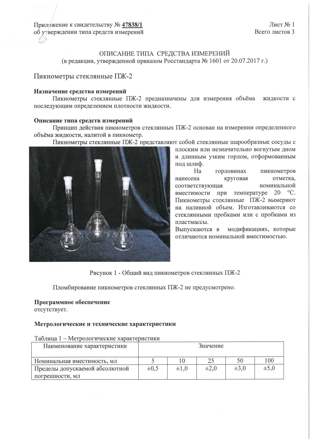 - Пикнометры стеклянные ПЖ-2. Химлаборприбор. Описание к СТСИ до 20.07.2027-1