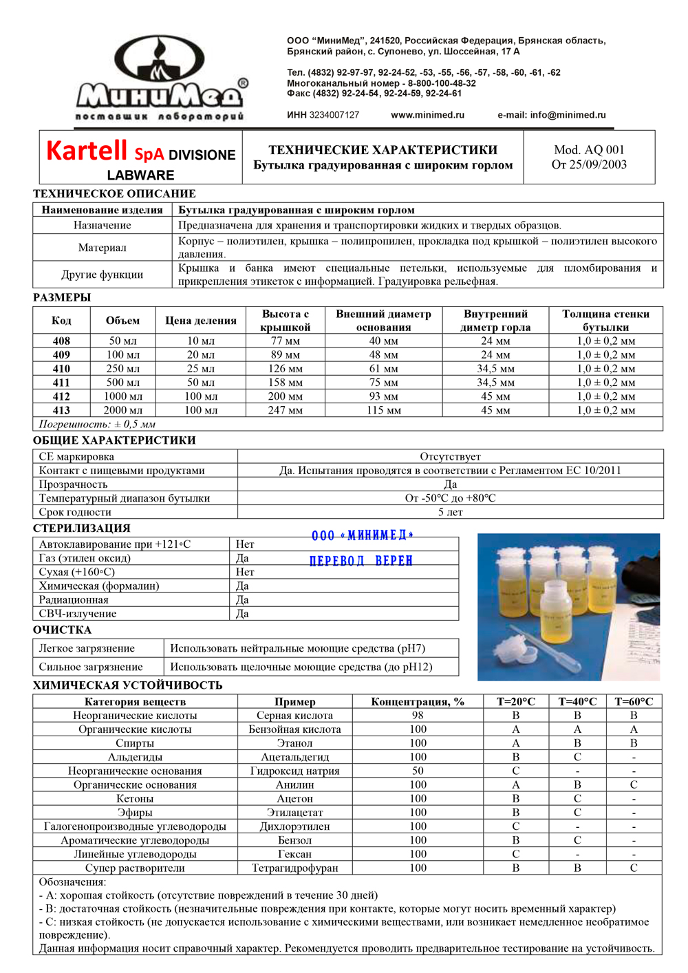 Градуированная бутылка с широким горлом идеальна для транспортировки токсичных образцов. Снабжена вкладышем и специальными петельками, которые можно использовать для пломбировки или крепления информационных табличек. Изготовлена из полиэтилена. Автоклавированию не подлежит.