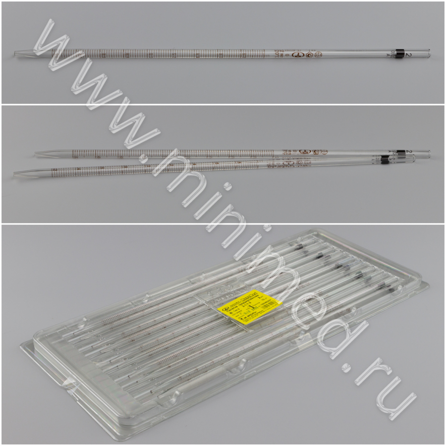 Пипетка градуированная 2-1-1-2, 1 класс, ГОСТ 29228-91,МиниМедПром, уп.10 шт, / кор.80шт.