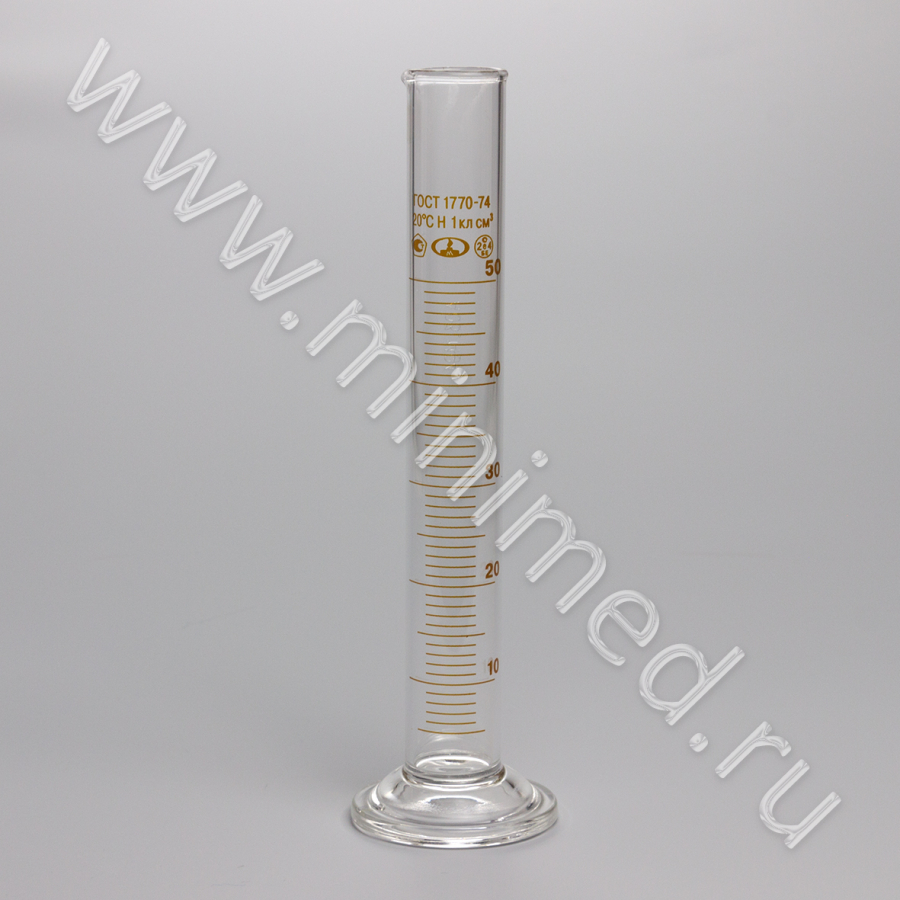 Цилиндр 1-50-1 мерный с носиком на стекл. основании, 1 класс, ГОСТ 1770-74, МиниМедПром, инд.уп./96 шт.