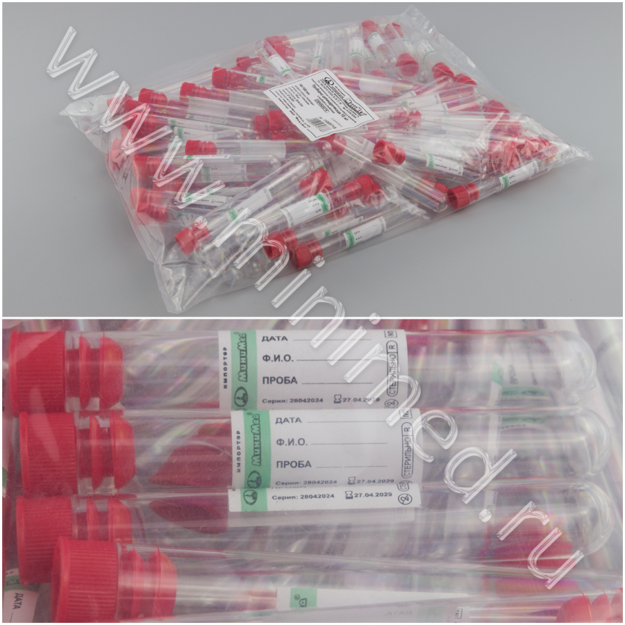 Пробирка 10 мл цилиндрическая с пробкой, с этикеткой, п/с, стерильная, Гритмед,уп.100 шт/кор.2500 шт.