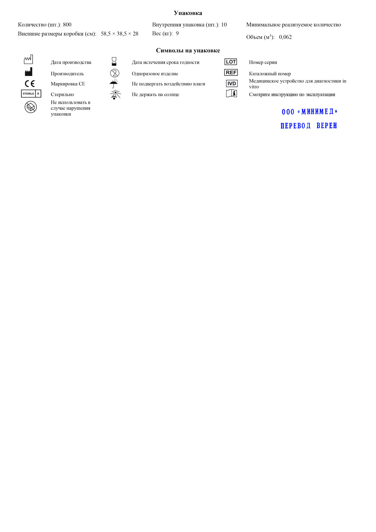 Упаковка........................................... 10 шт./800 шт.