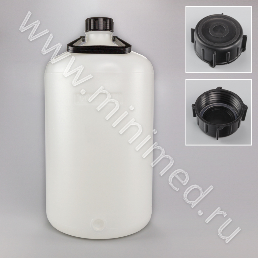 Предназначена для хранения, транспортировки различных химических реактивов и жидкостей. Снабжена прочной ручкой для переноски. В крышке предусмотрено уплотнительное кольцо. Имеется резьба для крана. Изготовлена из полиэтилена низкого давления (ПЭНД),