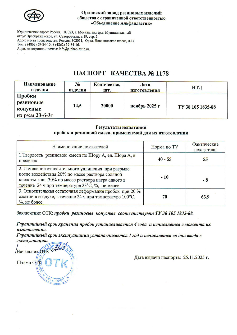 Пробка резиновая конусная № 14,5, уп.50/100шт