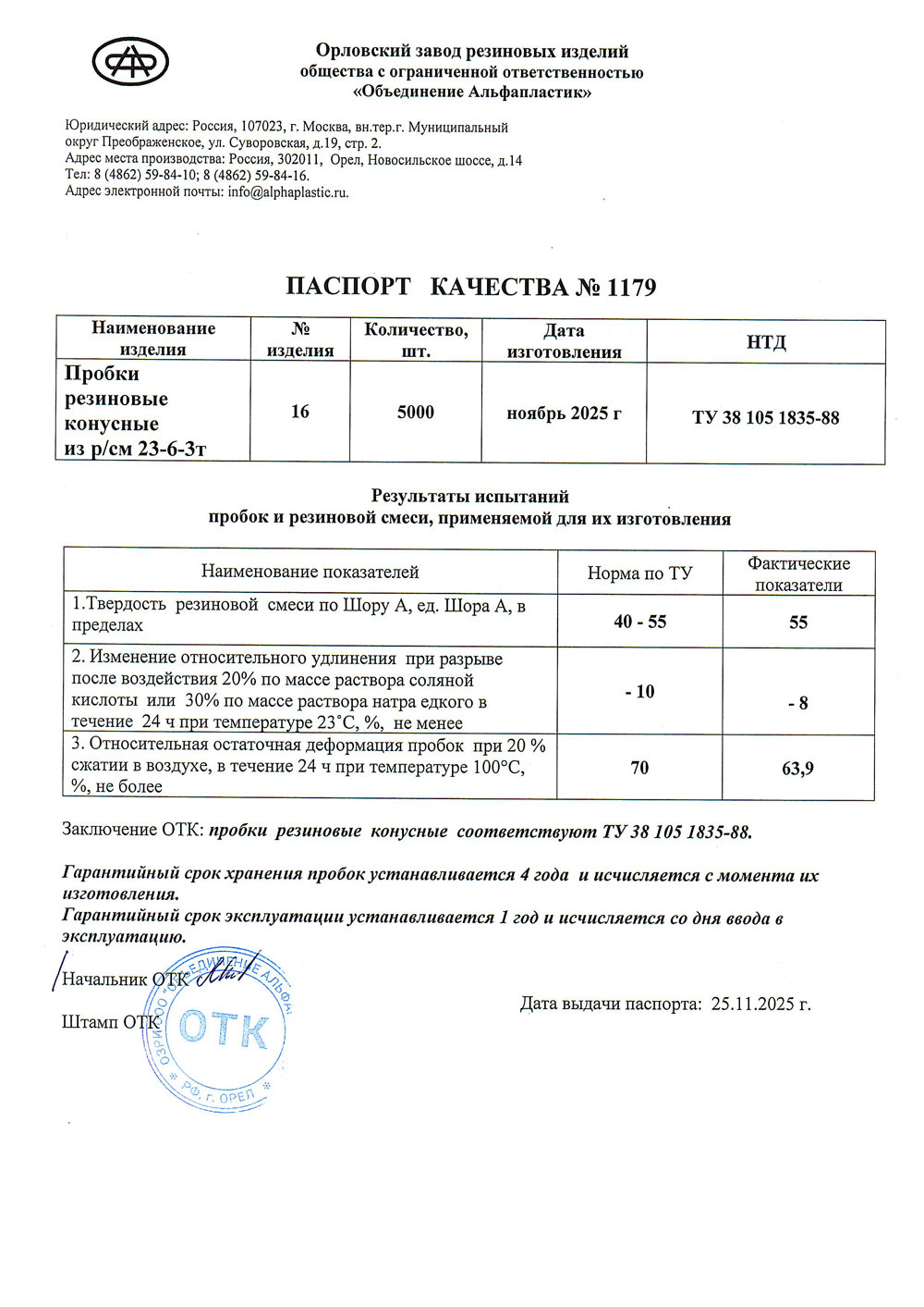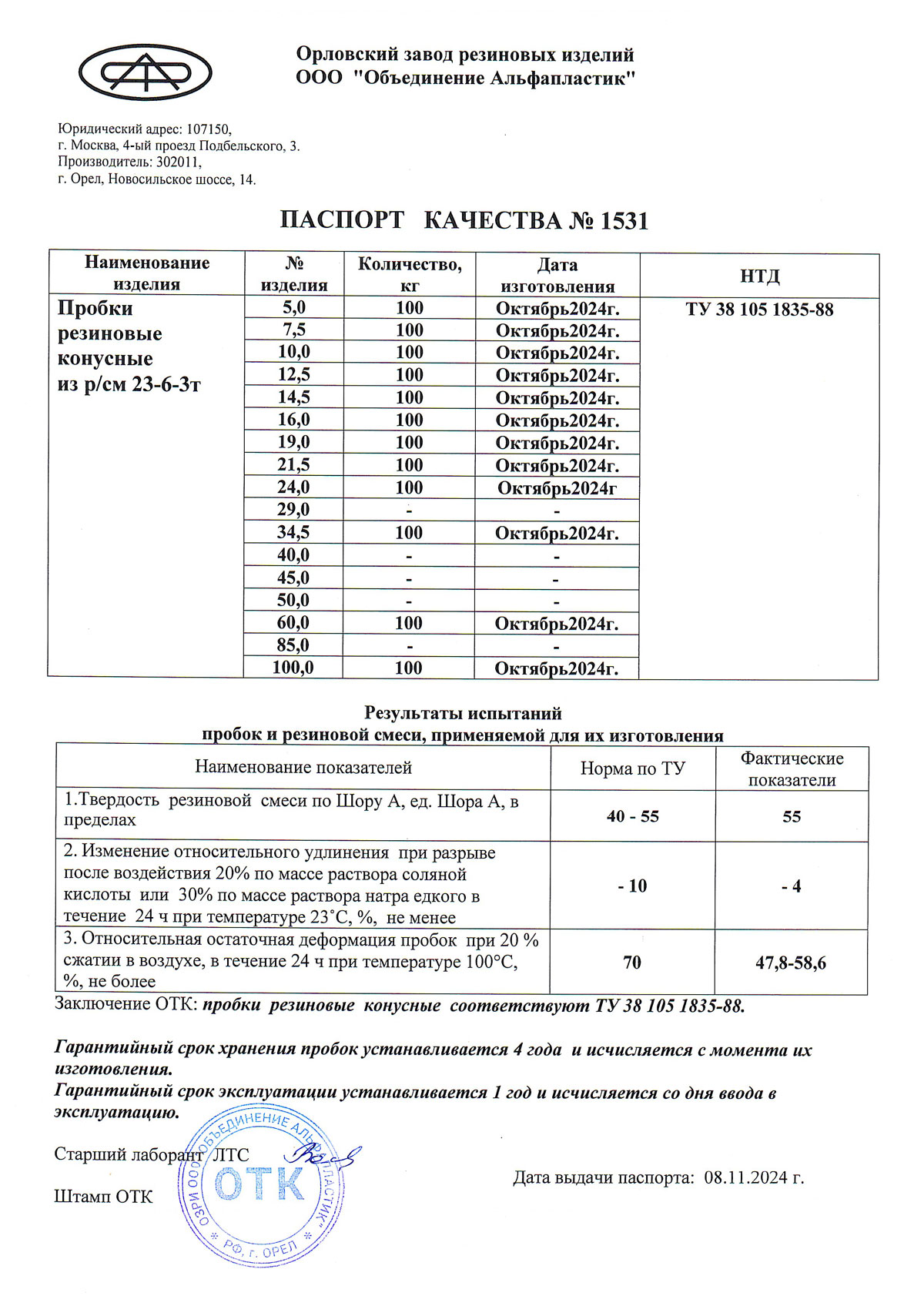 Пробка резиновая конусная № 16, уп.50 шт.