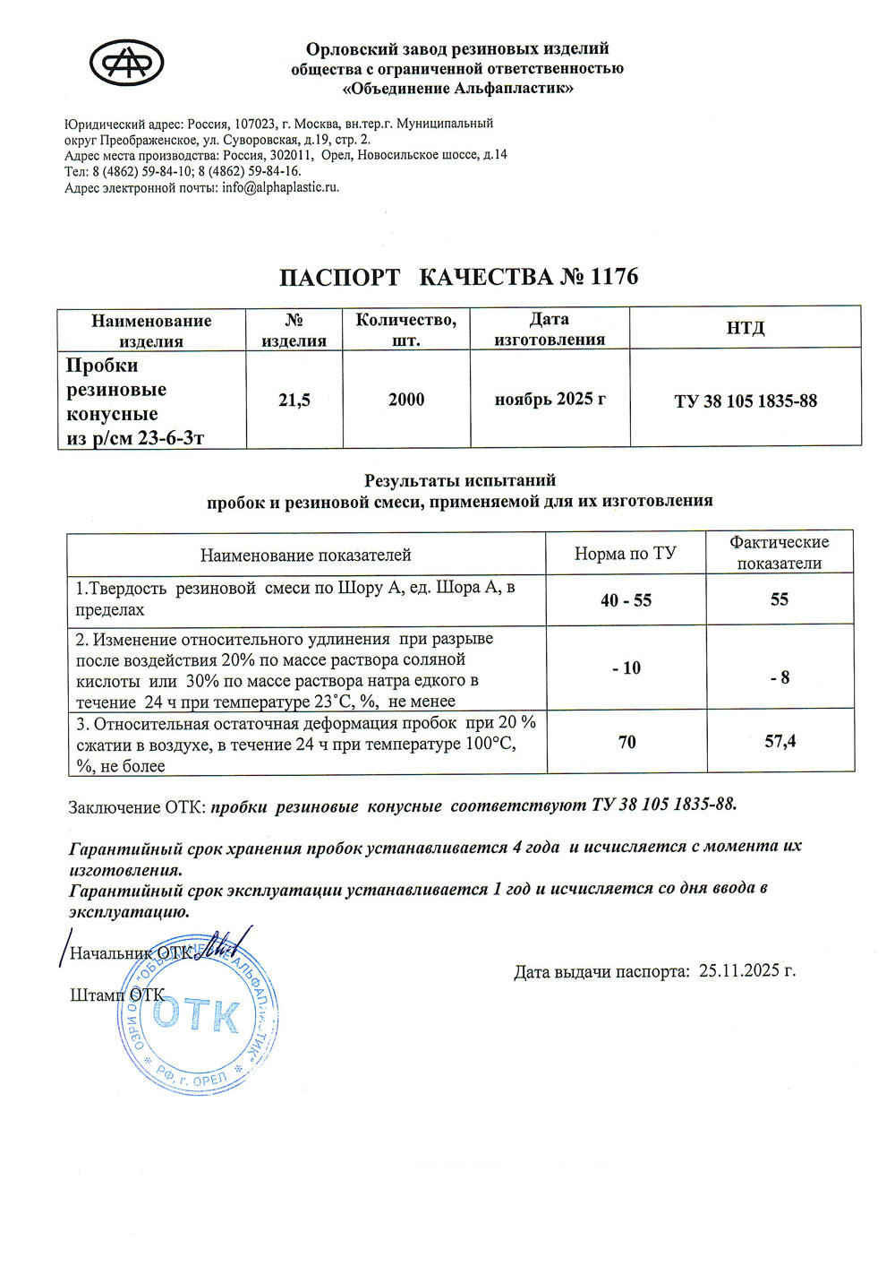 Пробка резиновая конусная № 21,5, уп.50шт