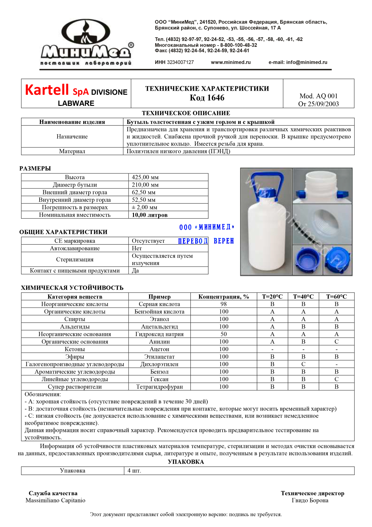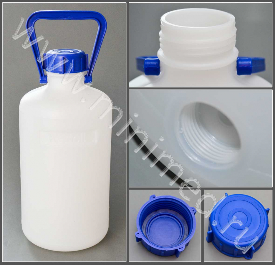 Предназначена для хранения, транспортировки различных химических реактивов и жидкостей. Снабжена прочной ручкой для переноски. В крышке предусмотрено уплотнительное кольцо. Имеется резьба для крана. Изготовлена из полиэтилена низкого давления (ПЭНД),