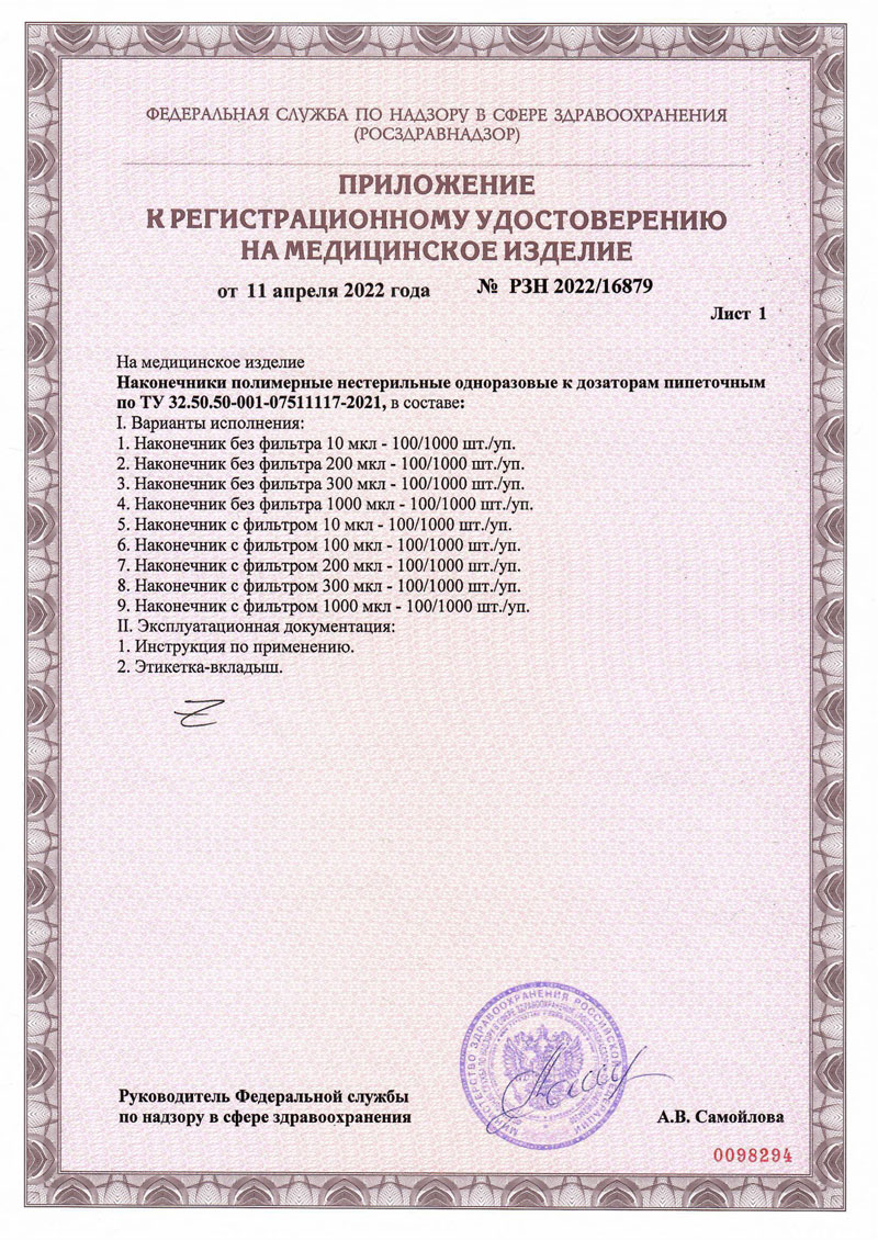 - Наконечник 200 мкл. У-У ППО. Выписка из реестра российской продукции до 31.10.20