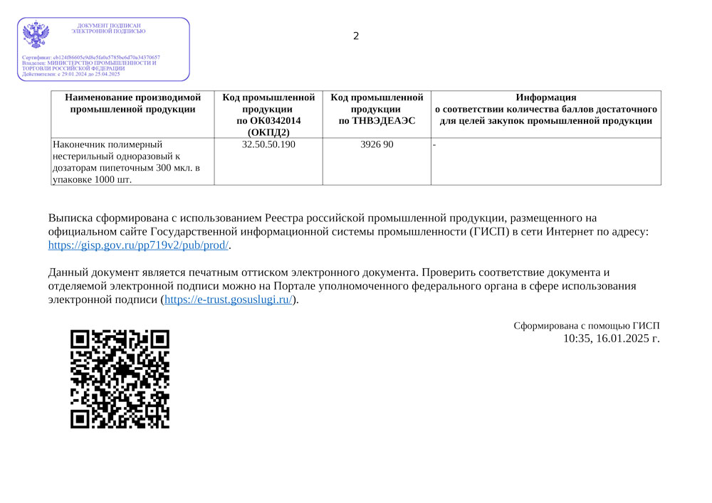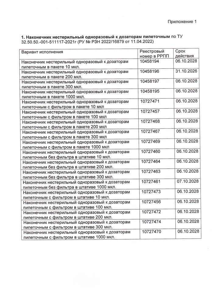 - Наконечник 300 мкл. У-У ППО. Выписка из реестра российской продукции до 31.10.20