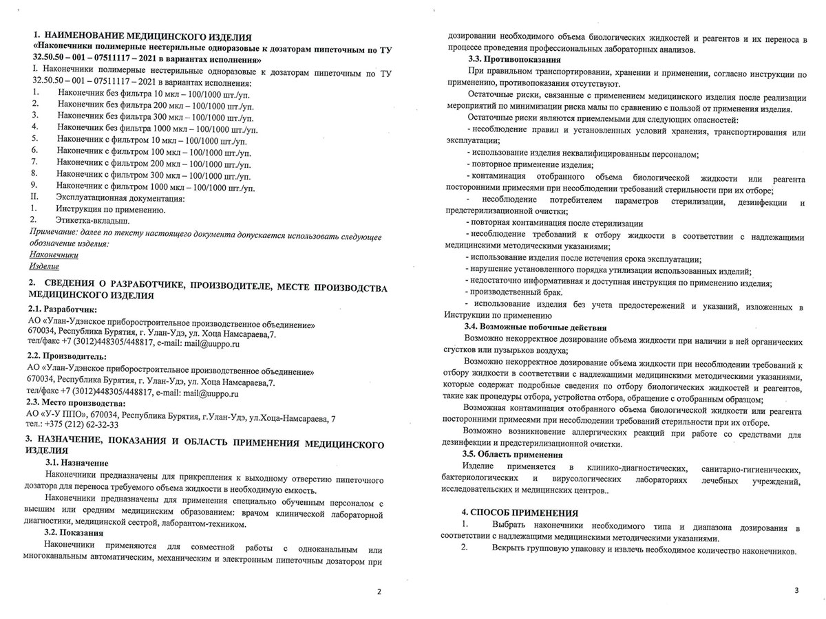 - Наконечники полимерные нестер. однор. к дозаторам пипеточным. У-У ППО. Инструк.