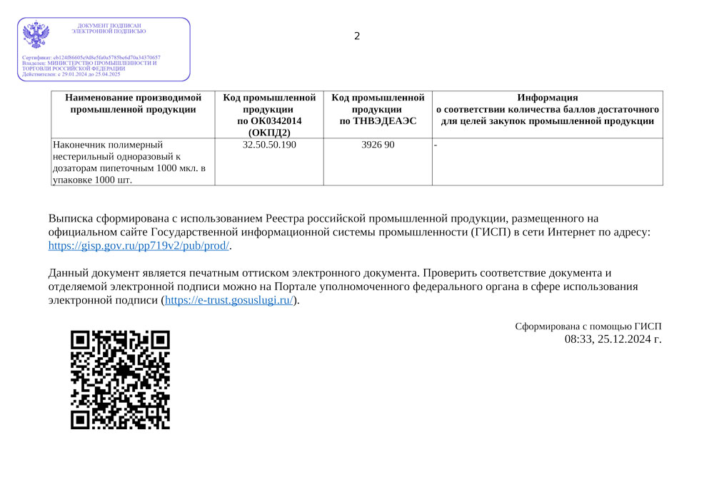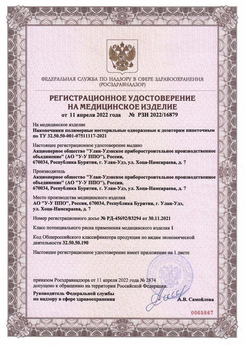 - Наконечник 1000 мкл. У-У ППО. Выписка из реестра российской продукции до 31.10.2