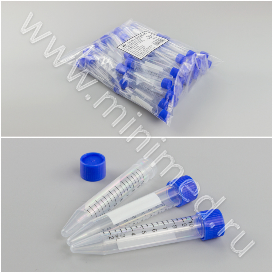 Пробирка коническая с винтовой крышкой, 10 мл, 17×107 мм,с дел, п/п, ТУ 9464-015-29508133-2014, МиниМед, уп.100шт, / кор. 1600шт.