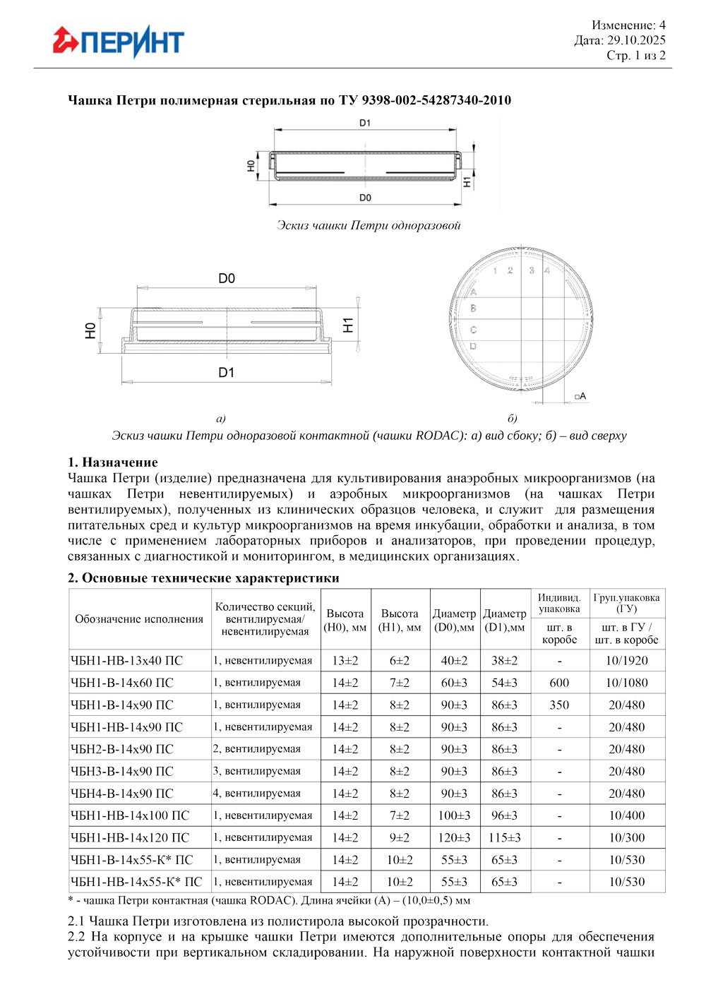 Чашка Петри одноразовая контактная невентилируемая (чашка Родека) ЧБН1-НВ-14×55-К ПС ГУ СТЕРИЛЬНО, уп.10/530шт, Перинт