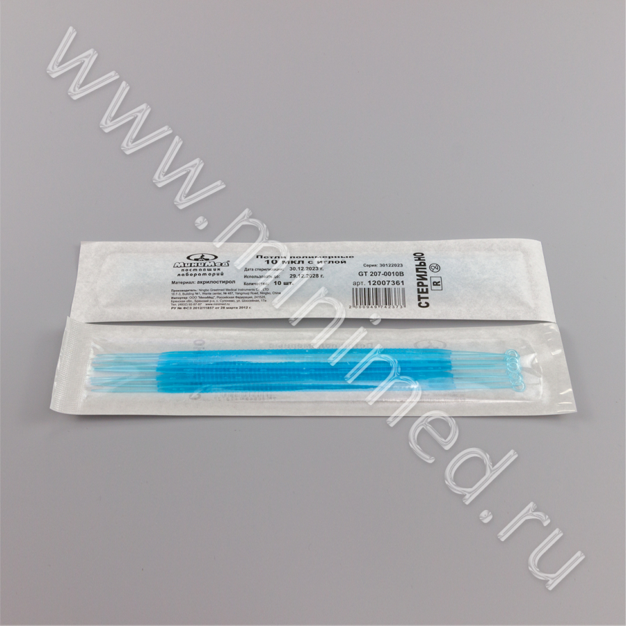 Петли полимерные 10 мкл с иглой, стерильные, AS, уп.10 шт, кор.100/1000 уп., Гритмед