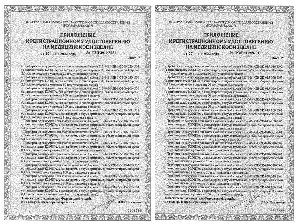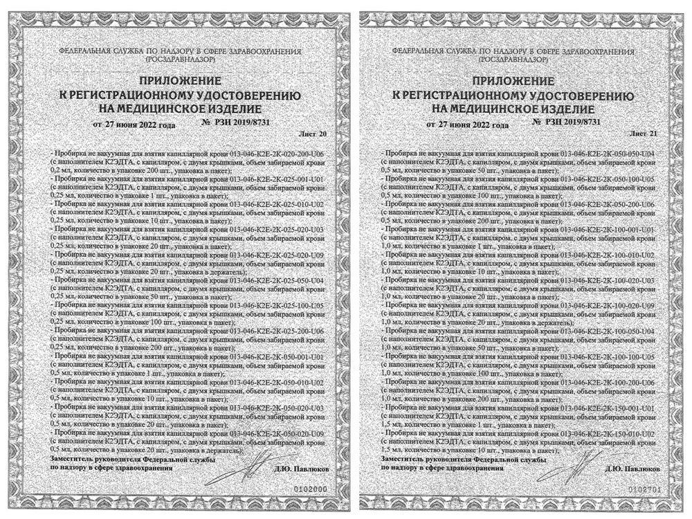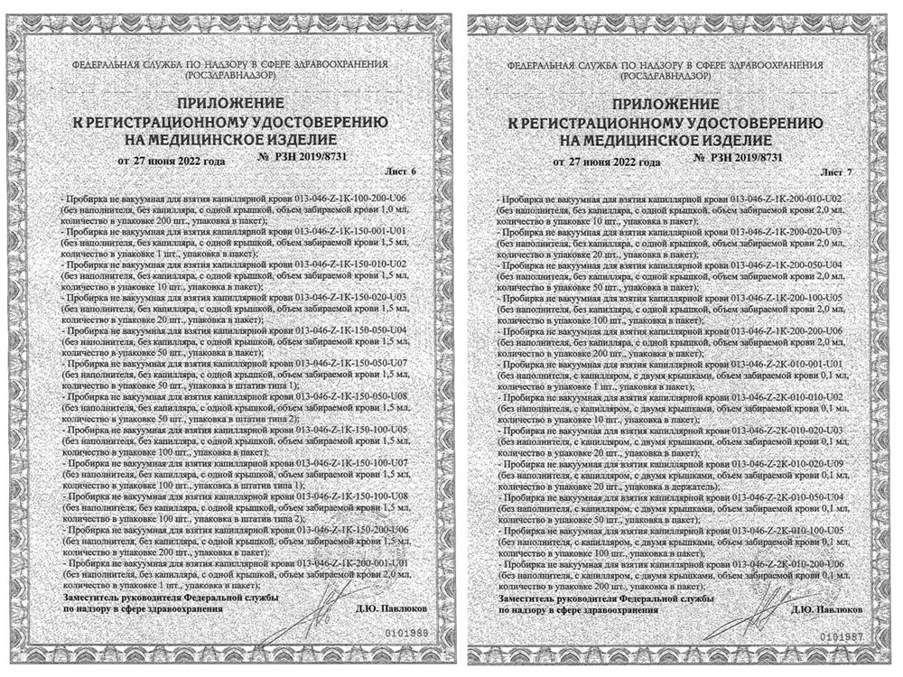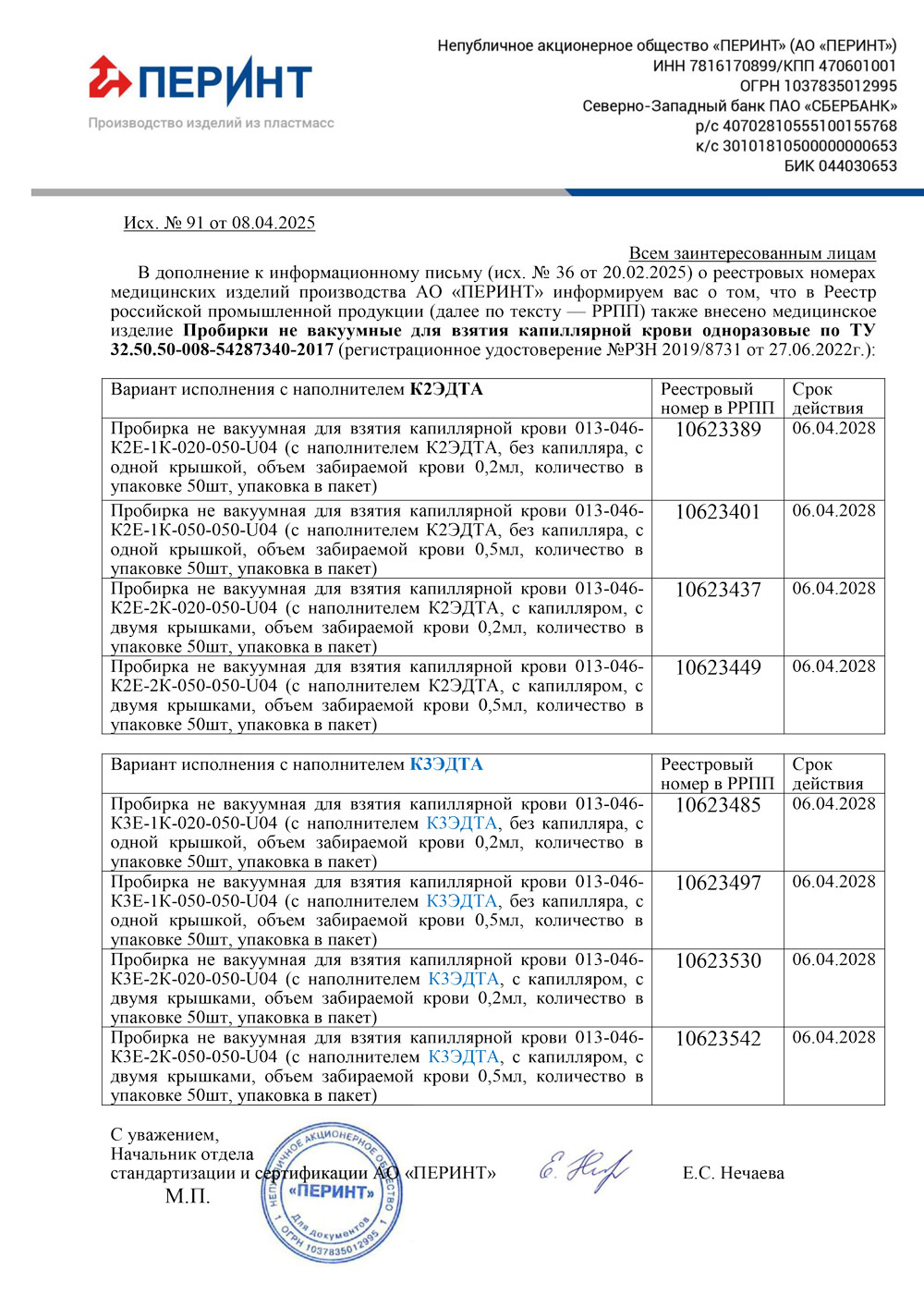 - Пробирки не вакуумные для взятия капиллярной крови. Перинт. Инф. письмо РРПП